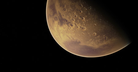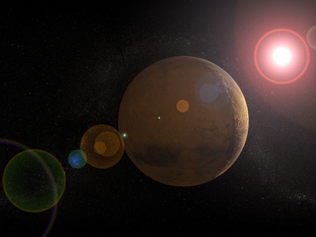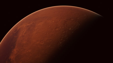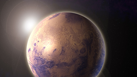 planet Mars in space with sunlight