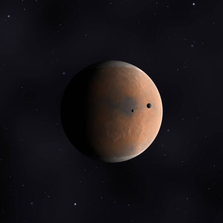 Planet Mars with its Moons Phobos and Deimos