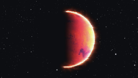 In the deep expanse of space, a striking crescent of a red celestial body glows against the dark backdrop, emanating an aura of mystery and grandeur.