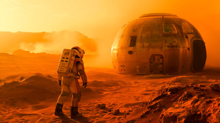 Human Colonization planet Mars. Mars habitat for sustaining human life and conducting scientific research. Generative ai