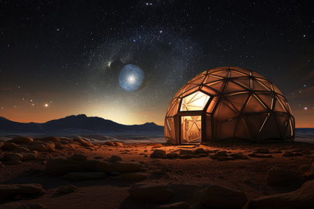 3d-printed mars habitat dome under starry sky, created with generative ai