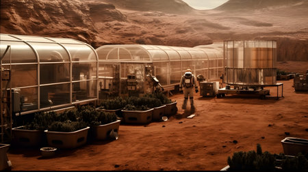 AI Generated. Mars Planet Habitat Space Exploration Settlement Establishment Space Travel
