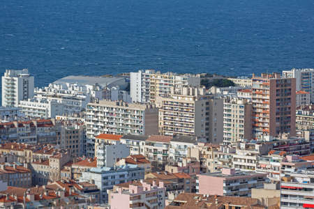 panoramic view to suburban area of Marseille with ocean view