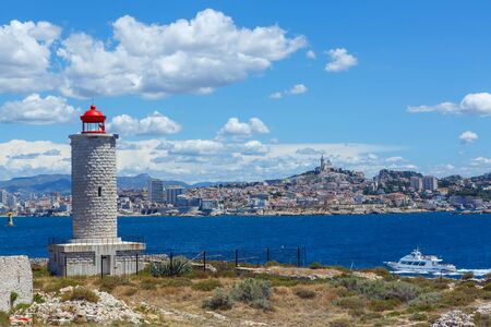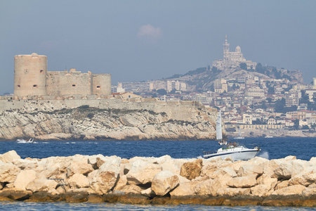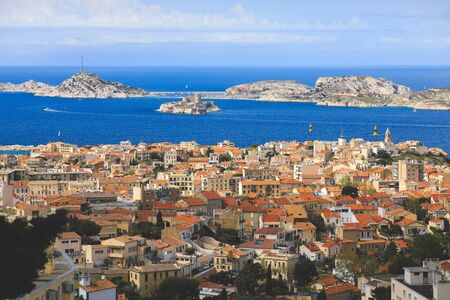 Beautiful Marseille panorama. Famous If island and Marseille harbor