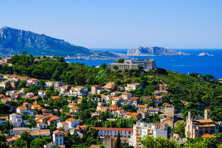 Marseille panorama from Frioul archipelago. Marseille, Provence-Alpes-Cote dAzur, France.