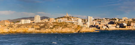 Marseille panorama from Frioul archipelago, Basilique de Notre-Dame de la Garde.