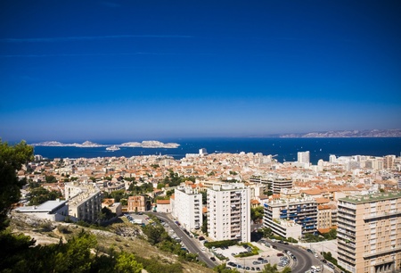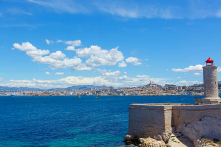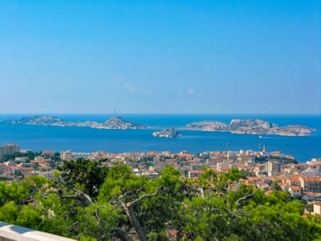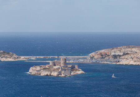 Beautiful Marseille panorama. Famous If island and Marseille harbor