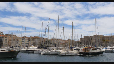 Row of yachts in the port of Marseille, France on a sunny day
