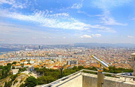 View of the city of Marseille, Provence, from the Basilique Notre-Dame de la Garde / The Basilica of Our Lady of the Guard. Beautiful panorama cityscape