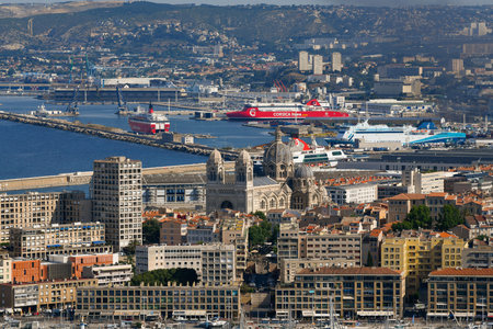 Panoramic View of The Old Port and the Cathedral The Major in Marseille