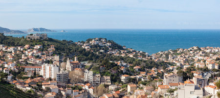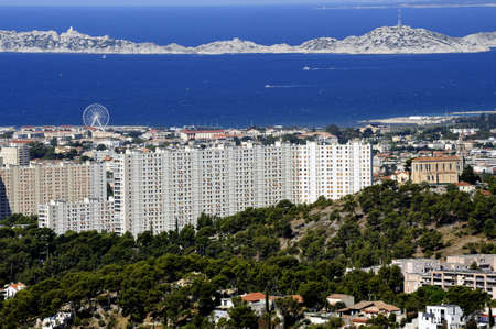 panoramic view to suburban area of Marseille with ocean view