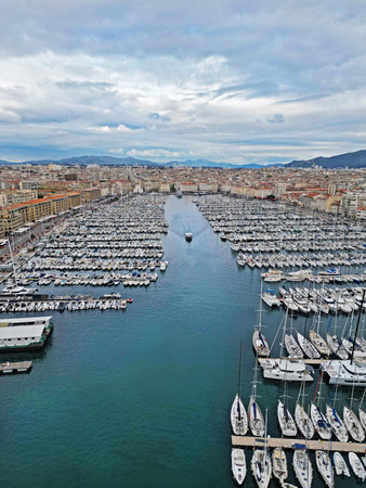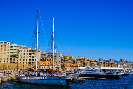 Marseille, France - March 7, 2017: Old harbor, Vieux Port, in Marseille, one of the most important landmarls in the city