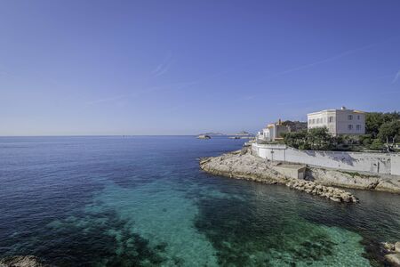 Marseille, France, the cornice. View of the Malmousque peninsula, with the islands in the background.