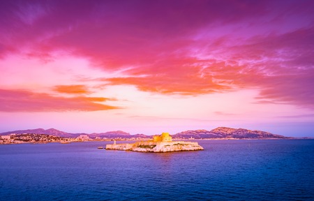 Sunset over famous chateau dIf, Marseille, France