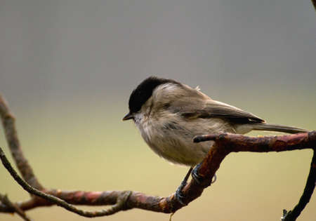 Willow Tit Poecile montanus on a branch. Finland Scandinavia. Writing space