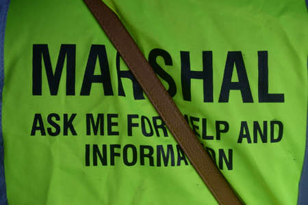 Traffic Marshal from behind in yellow reflective vest