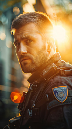 An officer in uniform displays a focused expression Conveys security and authority. Concept Portrait Photography, Uniform, Authority, Professionalism, Confidence