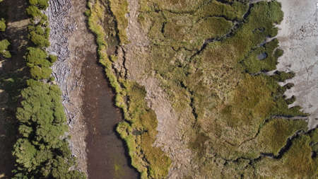 Abstract textures and veins cutting thru the wetlands of a tidal river system in Tasmanias Swan river area, Australia