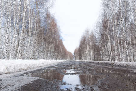 black trees on a background of white snow on a snowy day. winter road view. SNOWING. high quality photo