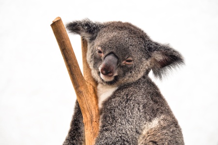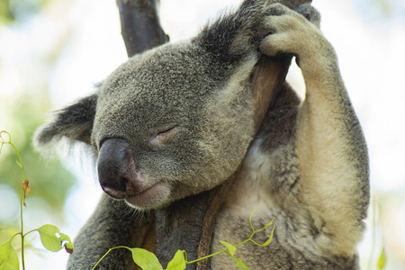 A very sleepy koala at the Queensland Zoo in Australia. These animals are largely sedentary and sleep up to 20 hours a day.