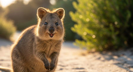Friendly Quokka animal rodent field. Wild mammal. Generate Ai