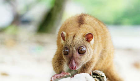 Rare fosa Cryptoprocta ferox running and looking around for food, the best photo.