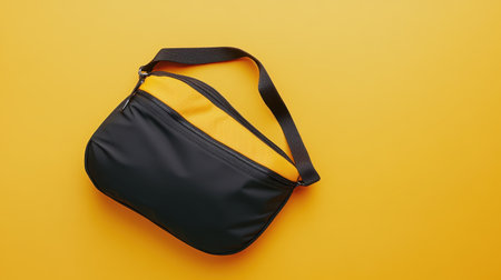 A sleek black and yellow messenger bag rests on a vibrant yellow background, showcasing its modern design ideal for daily use, travel, or school.