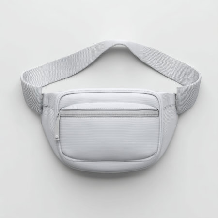 This modern white fanny pack features an adjustable strap and a zippered compartment, perfect for carrying essentials hands-free while maintaining a stylish appearance.