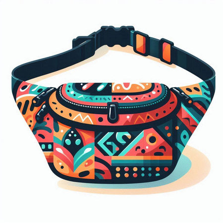 Illustration of a women's waist bag with ethnic ornaments