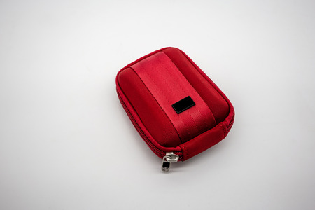 Red fabric soft case with zip isolated on white background.