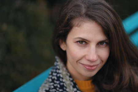 Portrait of a beautiful young girl outdoors. Outdoors portrait of beautiful young brunette woman looking at camera. Closeup sensual portrait of beautiful girl outdoors. Art photo