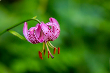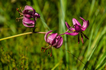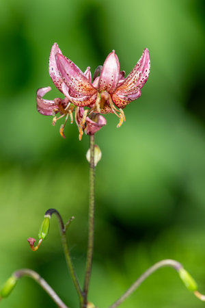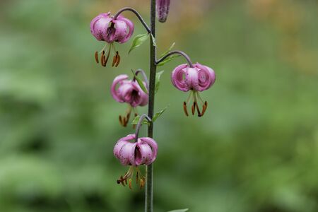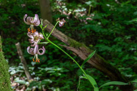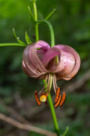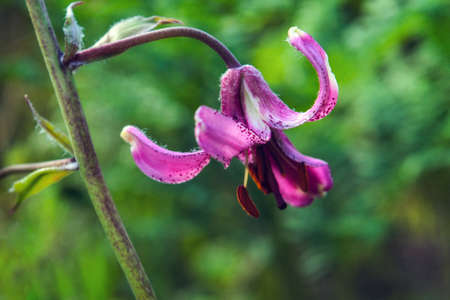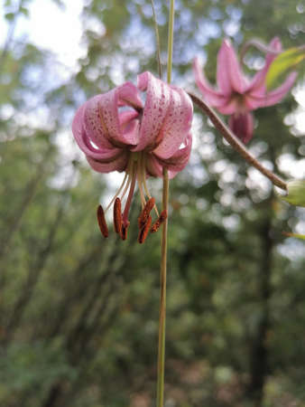 flower forest Lily with latin name Lilium martagon, medicinal plants included in the red book, just bloomed