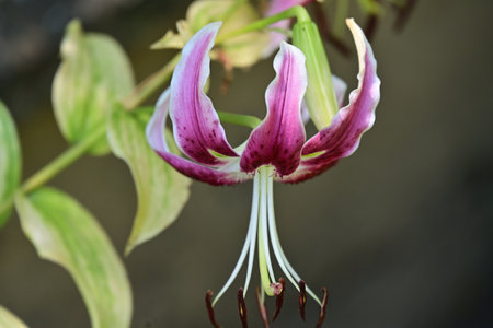 Closeup of a martagon lily (Lilium martagon) in the Austrian alps, cloudy day in summer