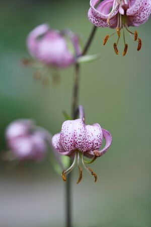 Pink wild flowers or Lilium martagon on defocused background. Sweden