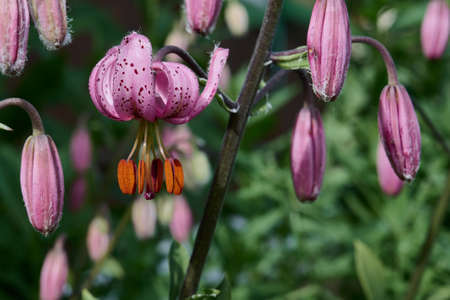 Pink flowers lily (Lilium martagon, martagon lily, Turk's cap lily)