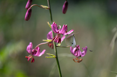 flower forest Lily with latin name Lilium martagon, medicinal plants included in the red book