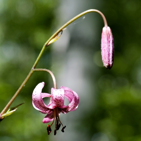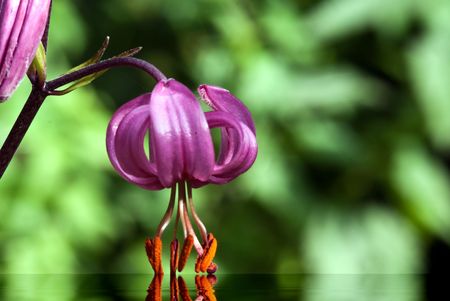 Forest lily close-up on green foliage background. LÃlium Mártagon