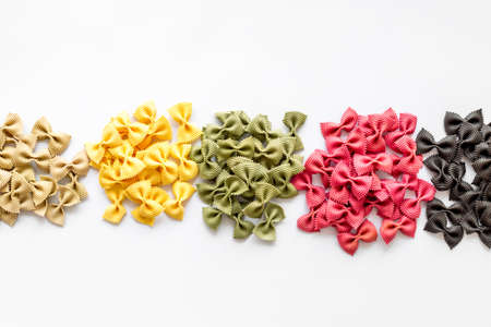 Top view of pasta - coloured farfalle. Italian food