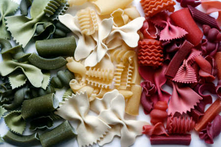 Assorted multicolored pasta in the form of an Italian flag