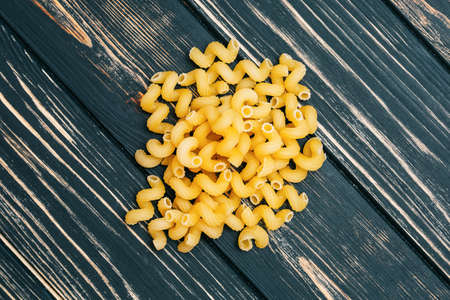 On a black wooden background macaroni. A bunch of pasta. Nice