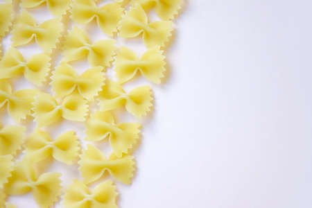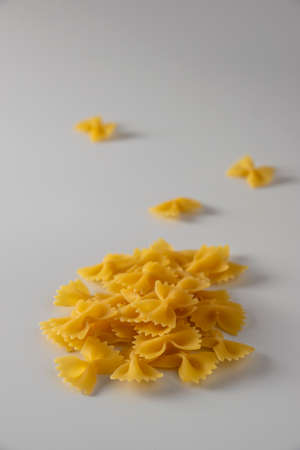 Farfalle italian pasta scattered freely on a white background
