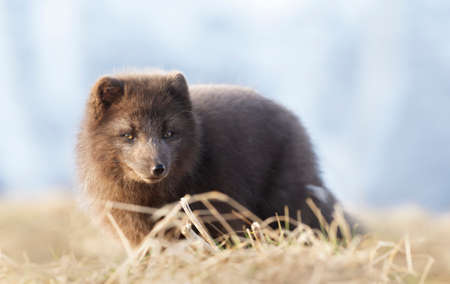 Close up of a blue morph Arctic fox (Vulpes lagopus) in Iceland.