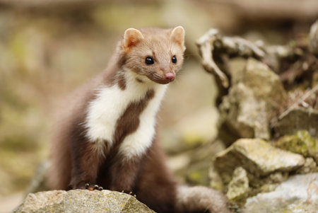 Beech marten or Martes foina also known as stone marten or white-breasted marten
