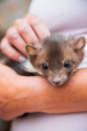Stone Marten or Beech Marten, martes foina, Adult with Heaters, Normandy