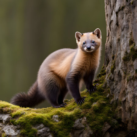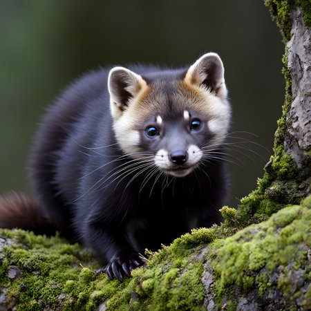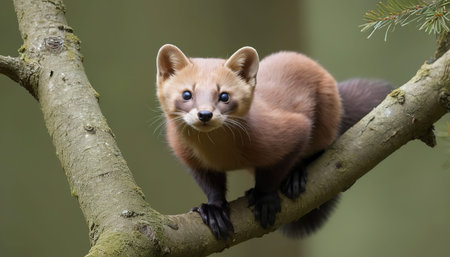 Alert Pine Marten in a Forest Setting