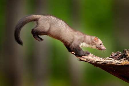 Martes foina -Stone marten jum to the stump in forest