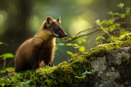 Pine Marten in a Lush Forest