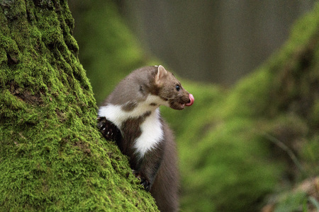 Marten in its natural environment in the Czech forest