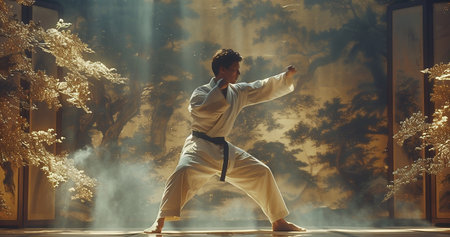 Martial arts athlete performs standard with confidence., generative AI
