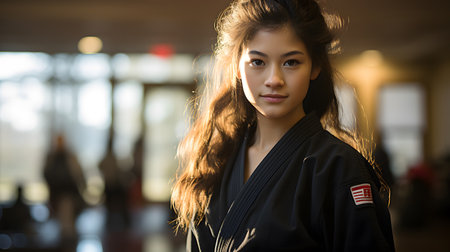 Serious young girl in martial arts uniform